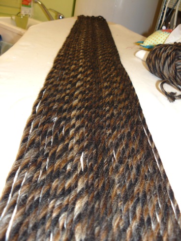 Déroulez le fil et faire une nappe de fils bien serrée de 140x25cm environ. Les fils doivent être bien collées les uns aux autres, mais ne pas se superposer.