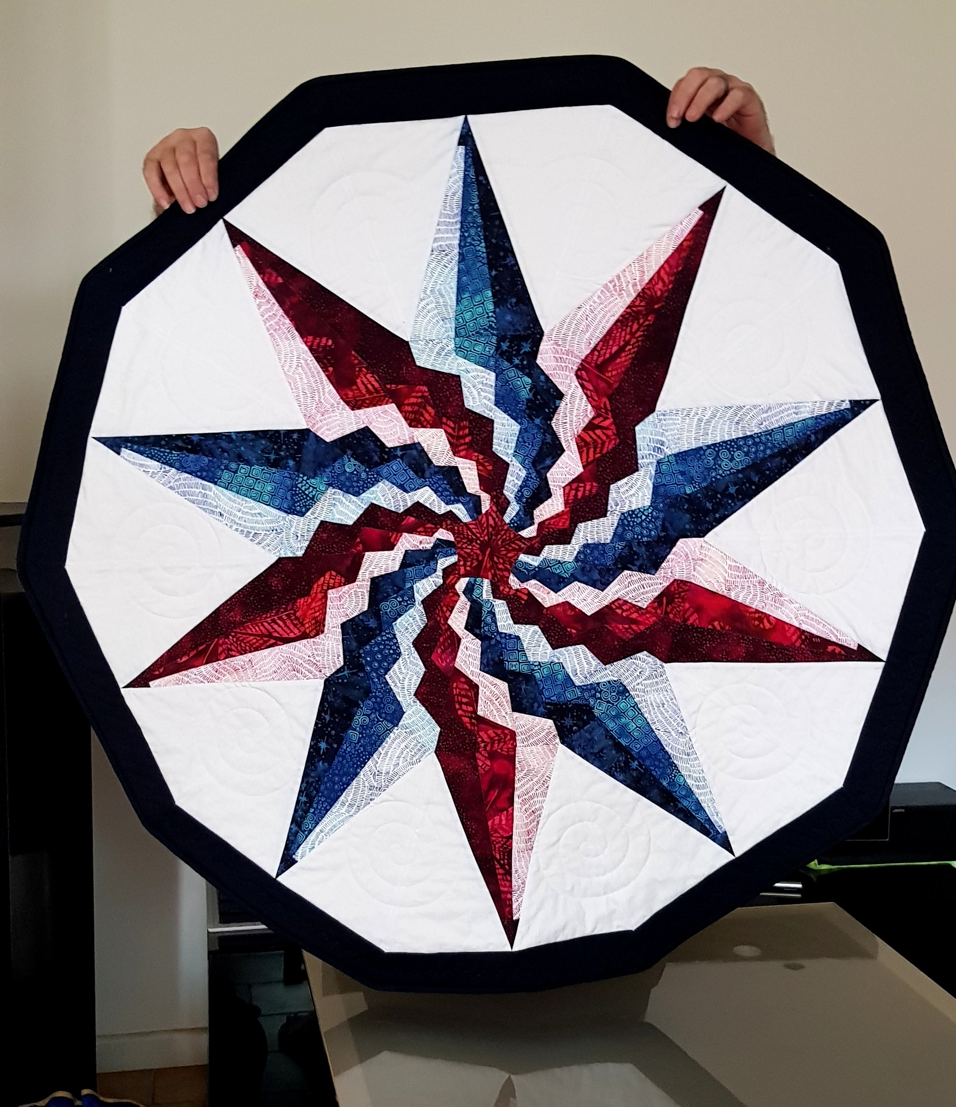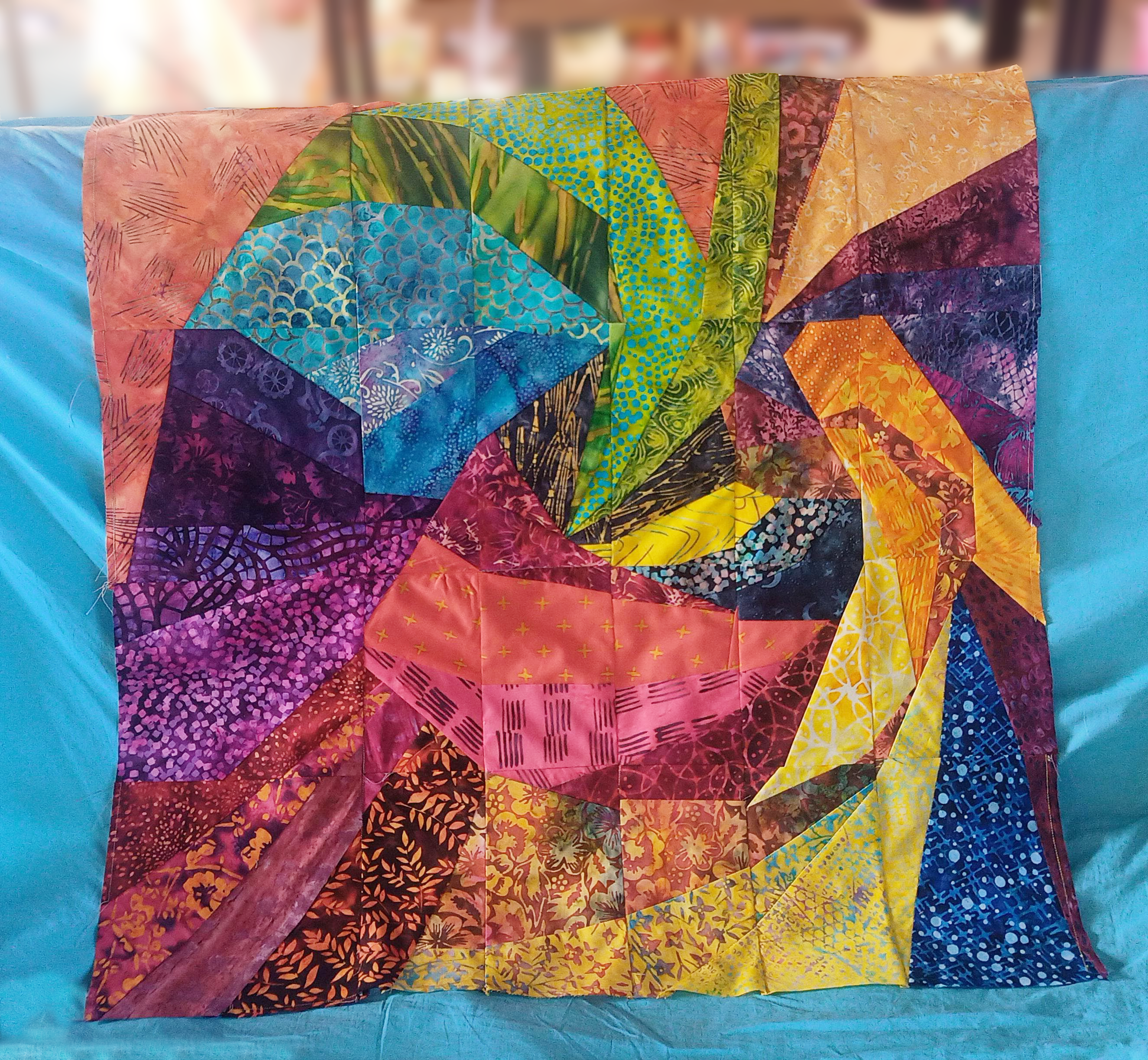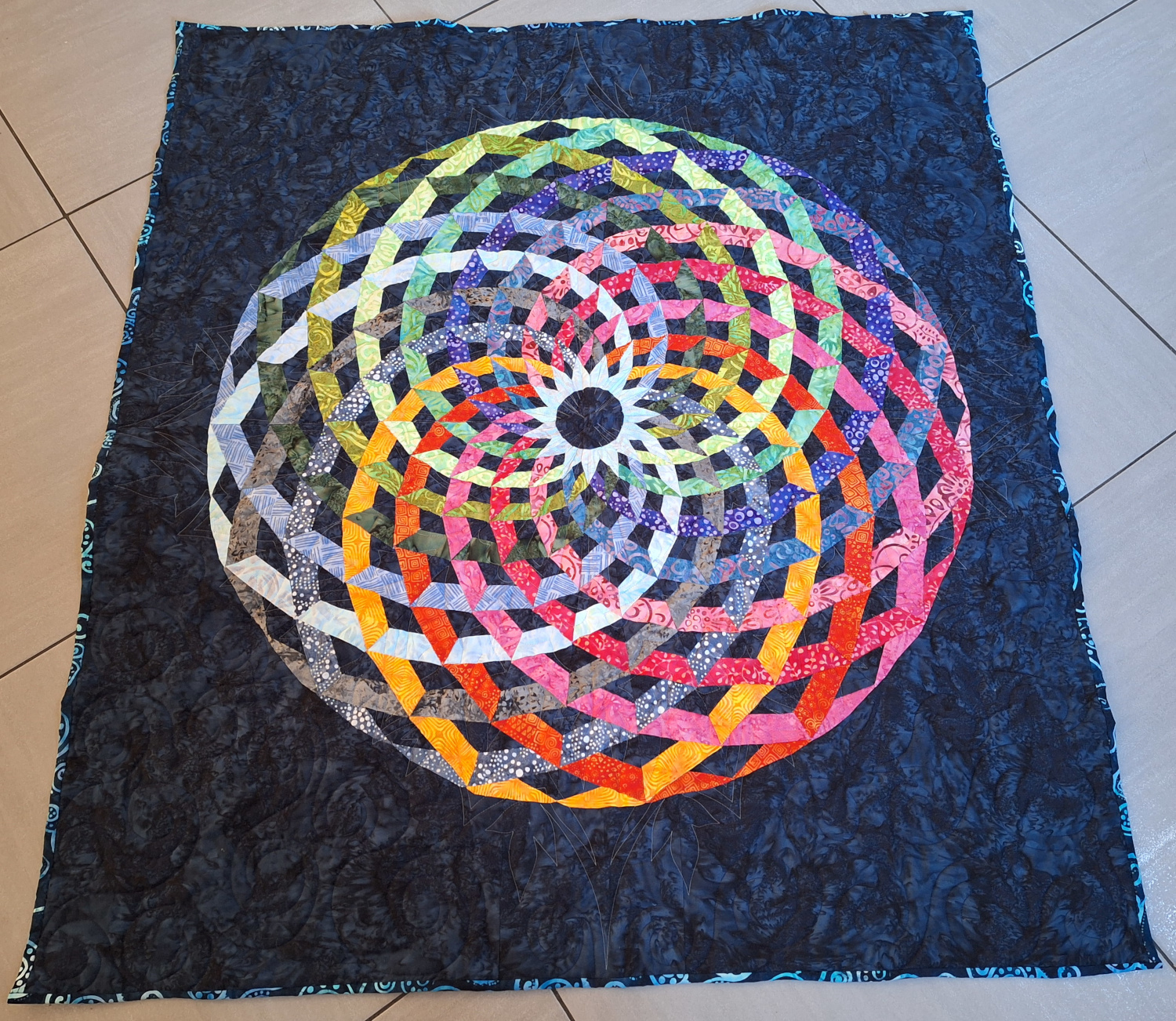 Avec 456 voix, la gagnante est Stéphanie avec sa rosace multicolore ! Ce patchwork 100% batik a été réalisé à la main :