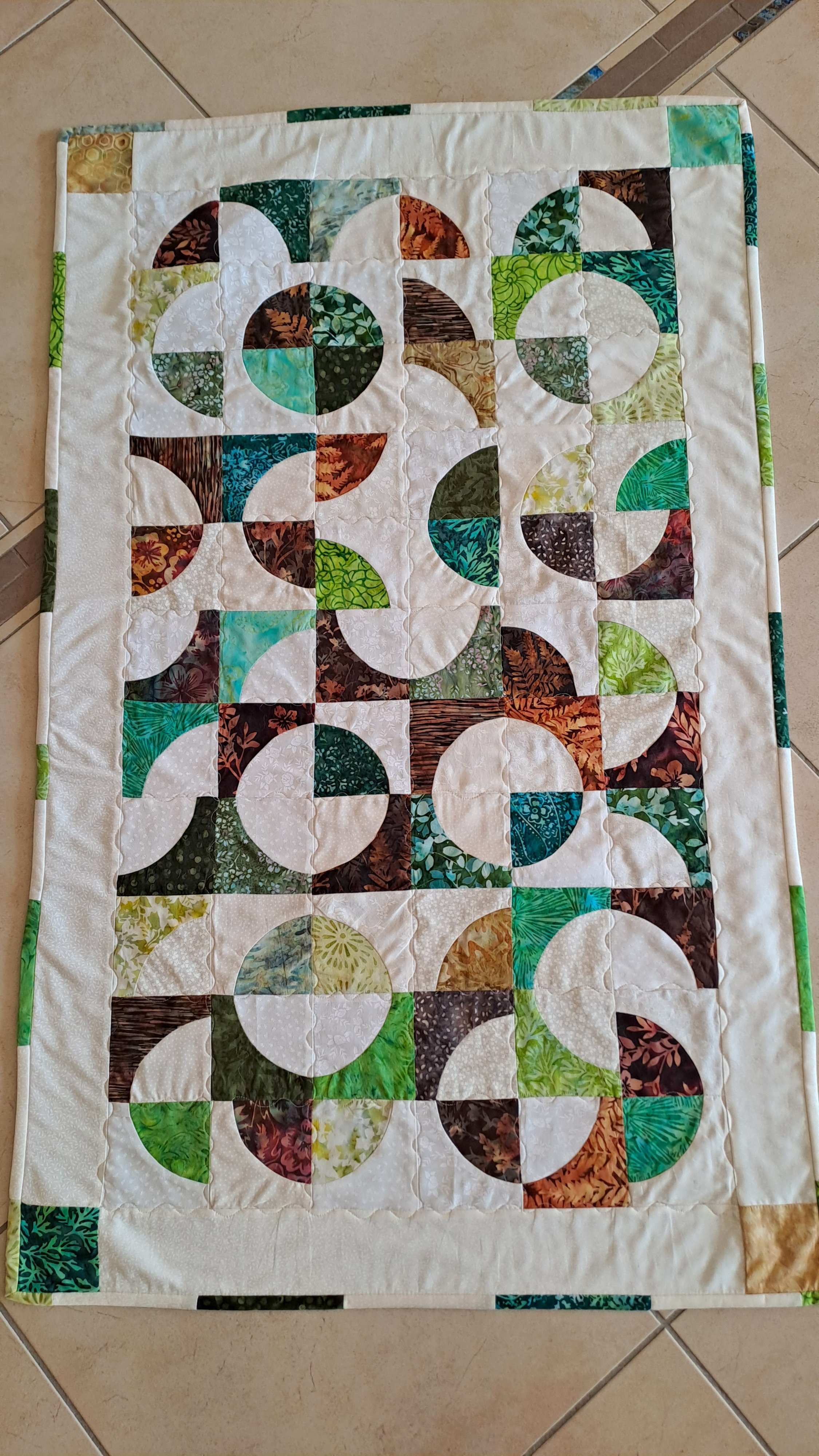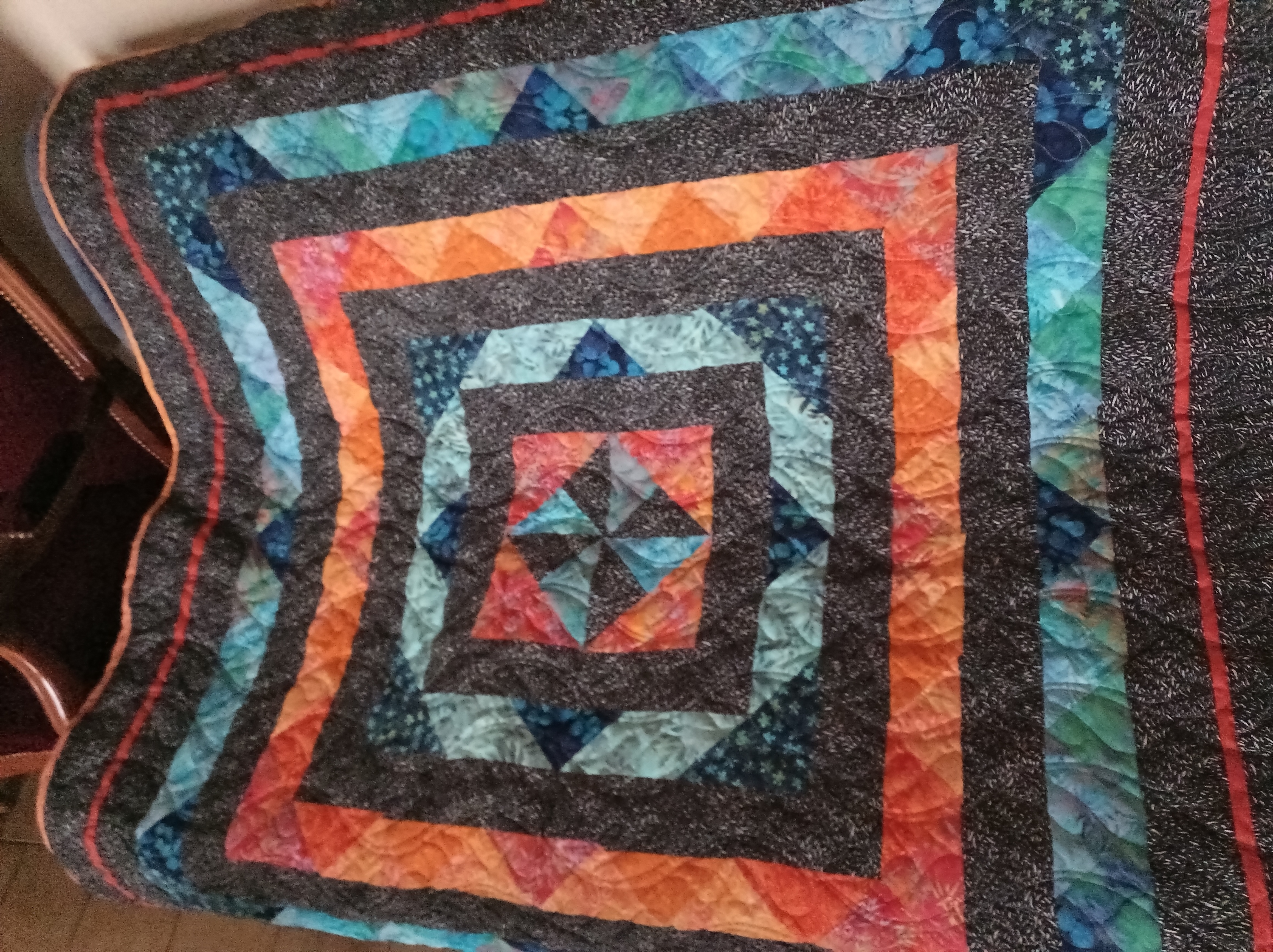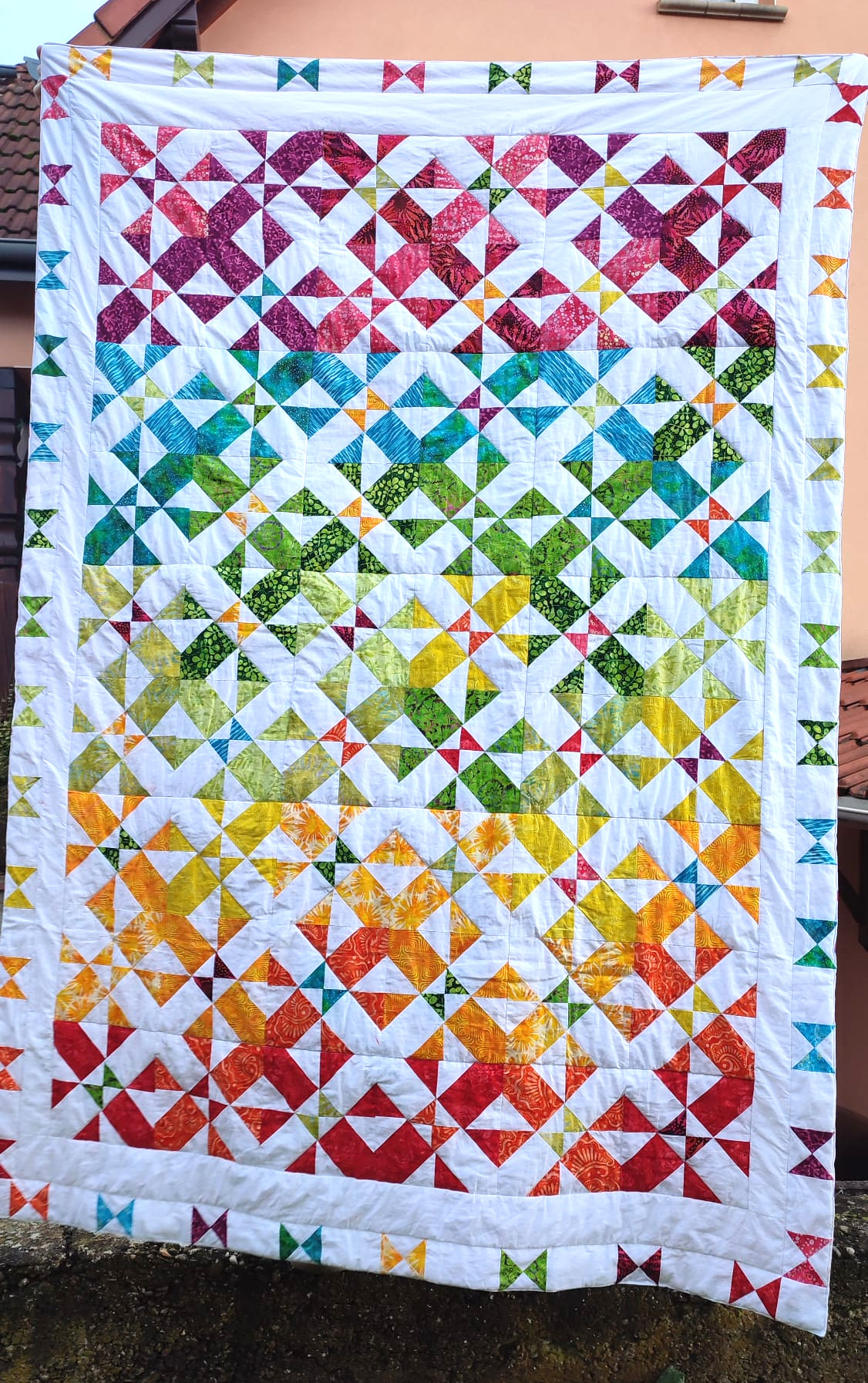 Avec 456 voix, la gagnante est Stéphanie avec sa rosace multicolore ! Ce patchwork 100% batik a été réalisé à la main :